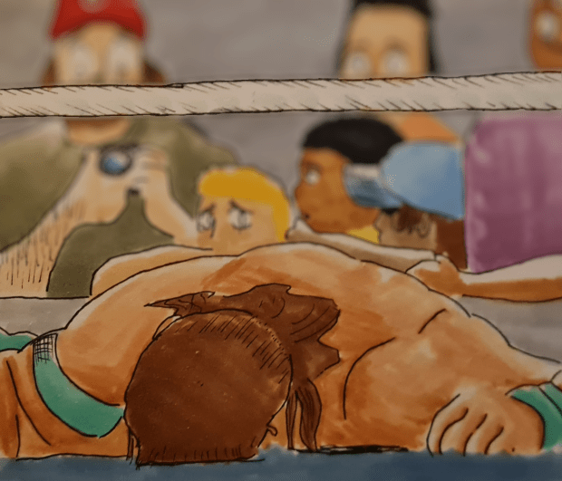 Someone made their way to me and a hand came to my shoulder. A raspy voice whispered, “Been an accident; the doc is here and medics are on their way.” It was Vic, our ringside trainer. “I’m gonna stay over here with you. Keep the double injury angle going; sell the recovery a bit.”